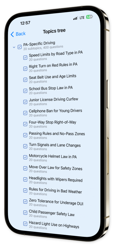 Download the Pennsylvania DMV Test app today for smarter, more efficient preparation for your driver's license exam! Equip yourself with the resources and confidence you need to hit the road with confidence and success. Take the wheel of your learning and drive towards your goal of becoming a licensed driver in Pennsylvania!