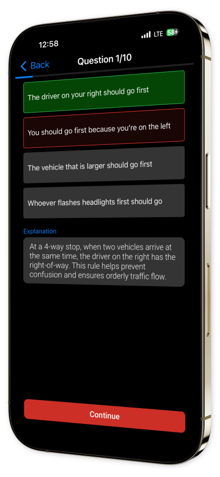 User-Friendly Interface: Immerse yourself in an easy-to-navigate, intuitive app design that allows you to concentrate on mastering your driving knowledge effortlessly.